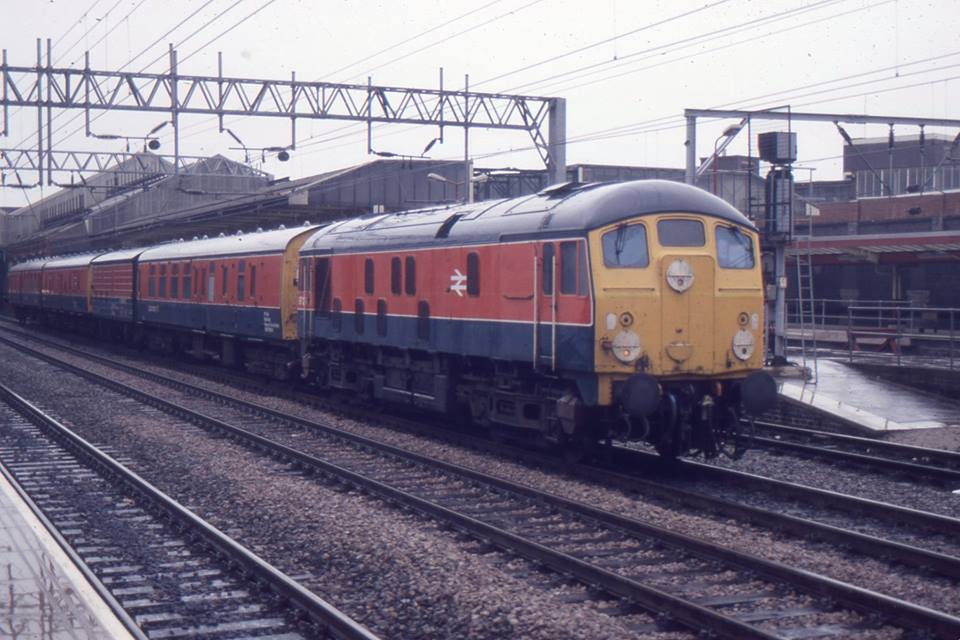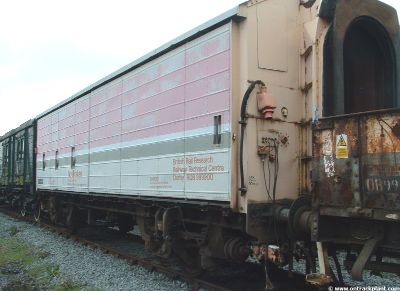 adhesion. First entering service in 1972 its purpose was to verify laboratory tests on surface contaminants on the railhead. It consisted of Laboratory 11 RDB975046, COV-AB RDB999900 and an auto-trailer RDB975076 usually operated with one of R&DD's own locos (e.g. the Baby Deltic or later the class 24 'Experiment' and class 31). The COV-AB was one of a batch of ten fitted with experimental 'Taperlite' suspension and housed the instrumentation and hydraulic packs, with special brake actuator units above each axle as well as tanks for laying fluid during the experiments. It had no conventional brakes and was fitted with end gangways for access. A year-long general survey of adhesions levels was undertaken initially and numerous special tests were performed. The train was a common site about the railway in the 70s and 80s. It was also used to assess the effectiveness of rail head treatment of the time such as water cannons. It usually had motive power from the Research Division's own pool of locos including, the Metrovick Co-Bo 5705, the Baby Deltic D5901, class 24 'Experiment', the original class 31 which was unfortunately destroyed by fire and then whatever was available was used. The last extensive use of the Tribometer Train to measure naturally occurring adhesion was in the early 1990s when a significant amount of measurements were taken to survey typical adhesion profiles on a number of BR routes. The final use of the Tribometer Train was in 1996 to compare the performance of portable tribometers with a full-scale tribometer to calibrate the former. The Tribometer Train was not used after this and was eventually disposed of by AEA Technology Rail in 2004 - another victim of privatisation. All three vehicles went to the Nottingham Heritage Centre but the auto trailer is now at the West Somerset Railway for restoration and Lab 11 RDB975046 has been restored at the Dartmoor Railway at Okehampton. COV-AB RDB999900 was scrapped at Booths of Rotherham in August 2009 Photographs are BR official unless credited |